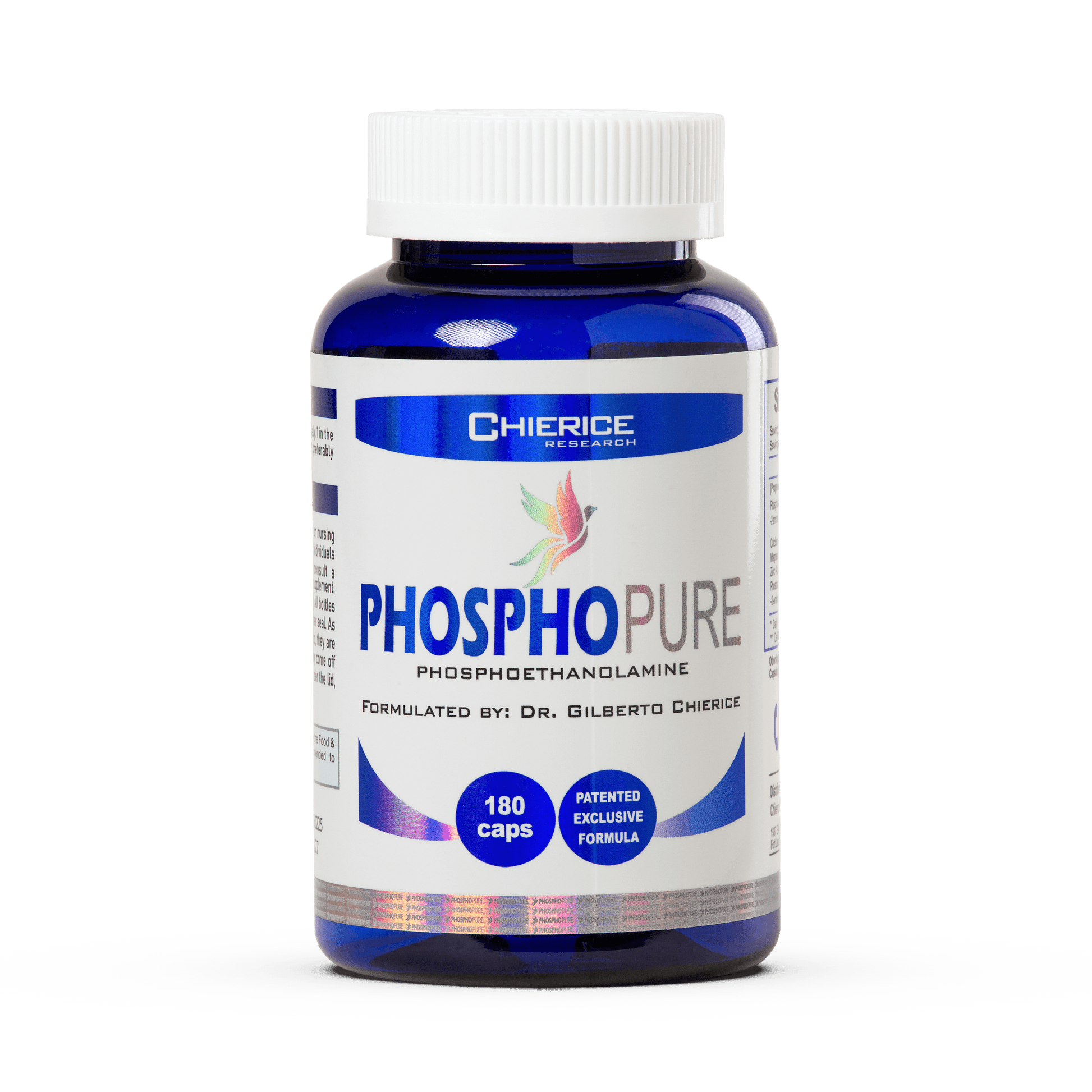 A specially formulated supplement with the synthetic bioidentical version of phosphoethanolamine, a compound naturally present in the body that contributes to the health of cell membranes. Manufactured in the United States under patented processes, Phosphopure is developed exclusively at Chierice Research, being the only bioidentical created by Prof. Dr. Gilberto Chierice. This product is designed to promote overall well-being by supporting optimal cellular function. Intended for daily use, it provides a consistent and reliable dosage in every capsule. Packaged in a bottle with 180 easy-to-swallow capsules, Phosphopure combines purity, convenience, and scientific precision for your wellness routine.