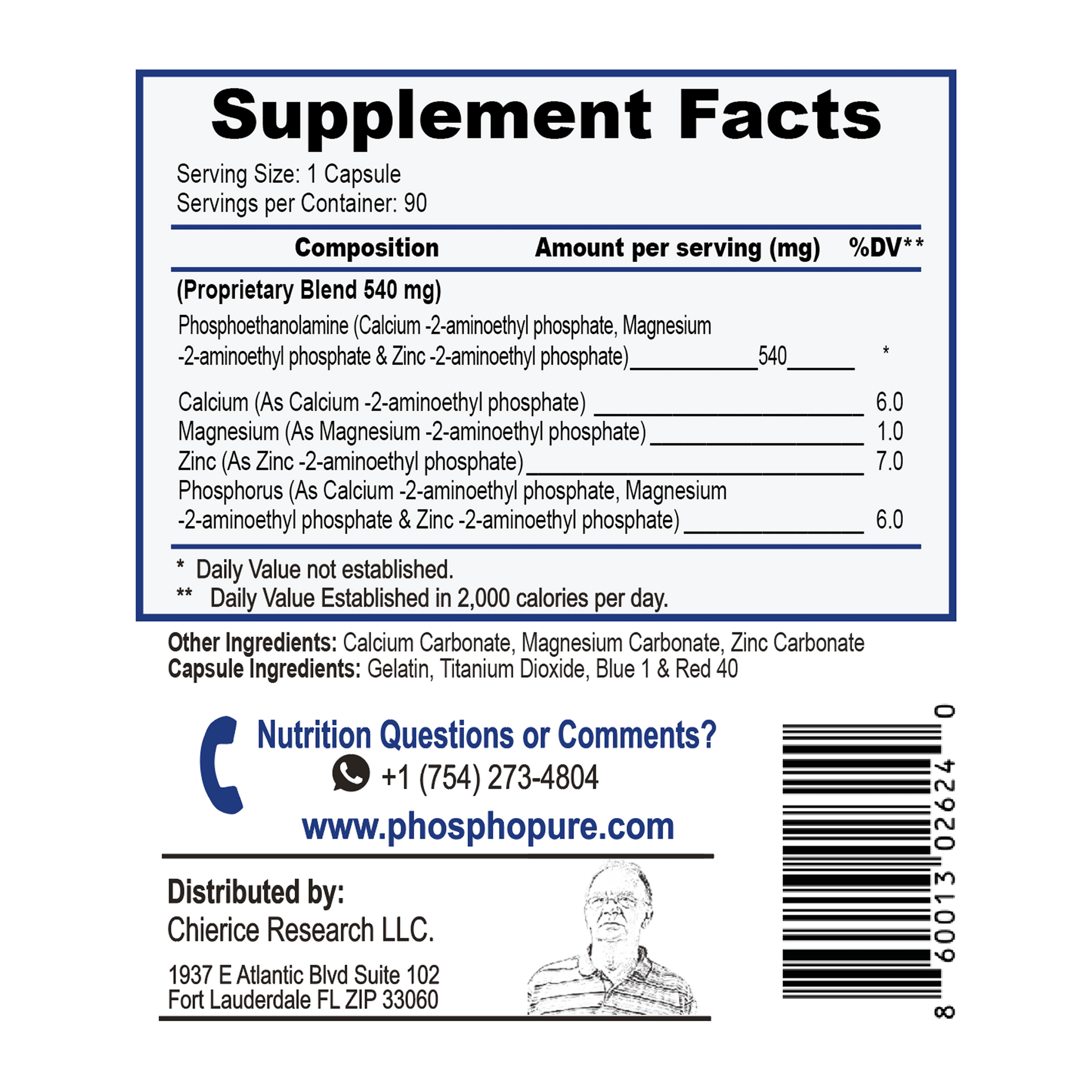 Phosphopure Phosphoethanolamine – 90 Capsules